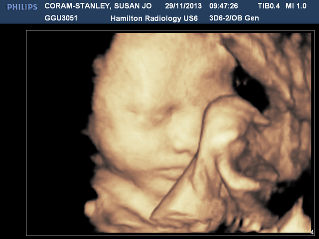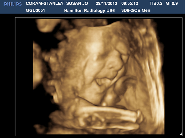 At 32 weeks we got a 3D scan. We combined this with our dating scan so were in there for AGES. But the scan was amazing, was so incredible seeing baby move about in there, in 3D. He waved and waggled his fingers, did a huge laugh - or cry or something, and just seeing him was truly incredible.