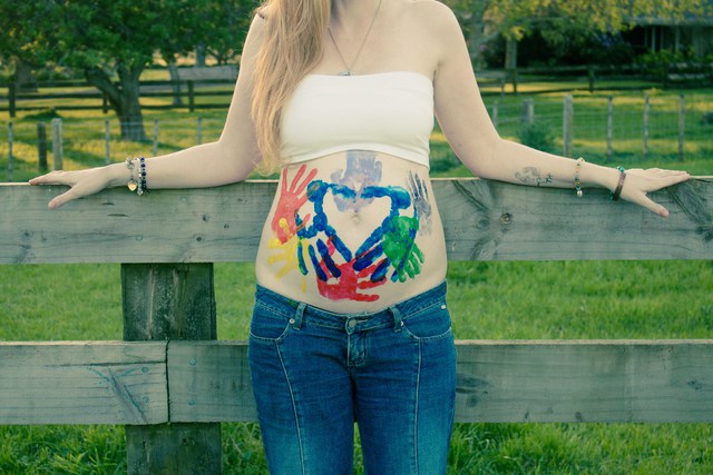 At 25 weeks we had professional belly photos taken. I was too scared to wait too far into the pregnancy in case we didn't get too much further. We included Koby. We had family photos. As well as my belly photos. I was in love with my belly. We did the kids handprints on my belly - in rainbow colours, and belly painting to paint a rainbow on my belly.