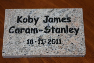 masses of red flowers. I change the colour of the flowers each year, but am often drawn to purples and blues for him, as this is the colours I associate with him. There are gorgeous blue iris's that flower in pots beside the garden also, which are Kobys flowers, they are from my Mums garden, as she bought them to his funeral.