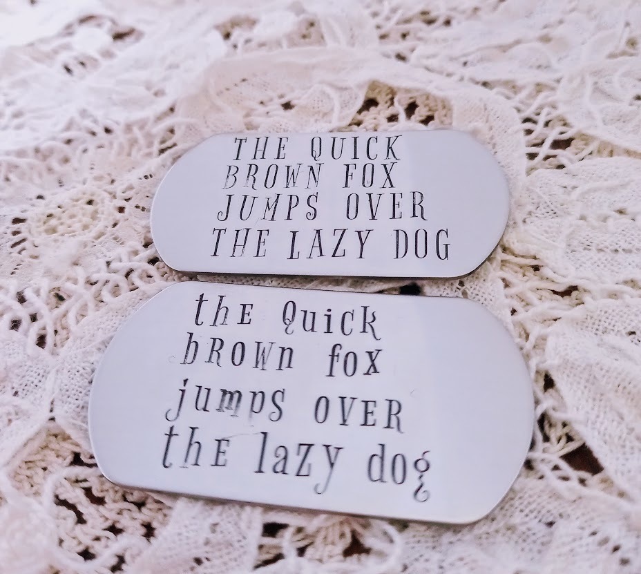 This is a large font (5mm) and is best suited to keyrings and wider cuff bracelets.