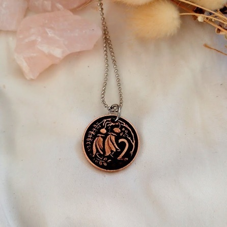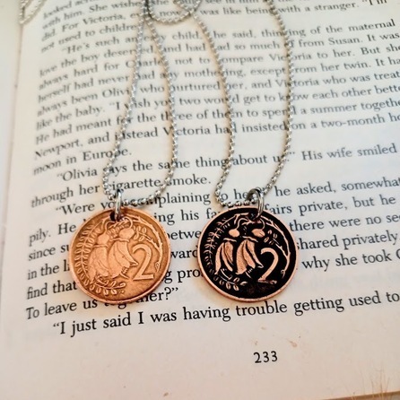 Please note these are upcycled coins that are in the age range of 30 years plus. They come on a 60cm stainless steel ball chain or a 51cm stainless steel rolo chain.
