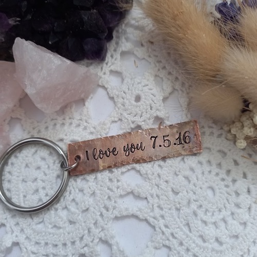 If you love to follow the traditional wedding anniversaries, this handstamped copper keyring might be exactly what you are looking for.
