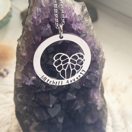 The gorgeous Angel Wings Pendant, a truly captivating piece that combines the beauty of angelic wings with personalised details.
