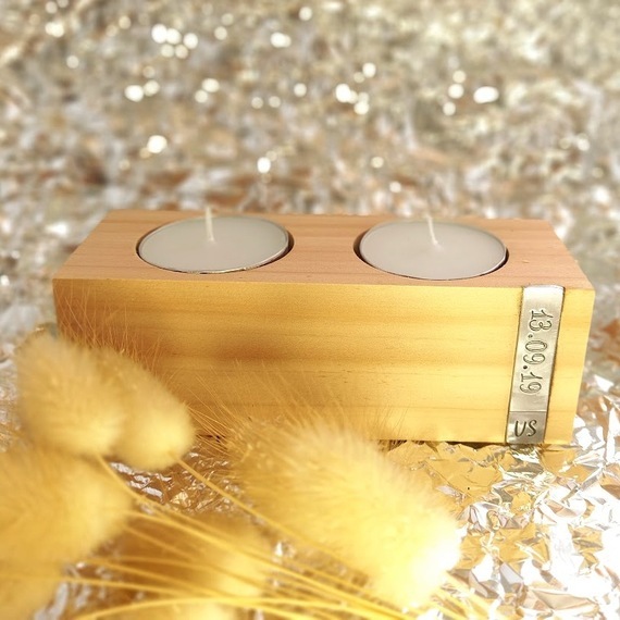 The Candle Holder is 12cm in length, handcrafted for you in our home studio / workshop and comes with 2 tealights so it's all ready to go.