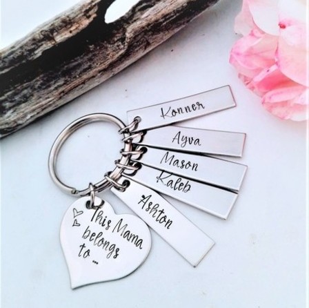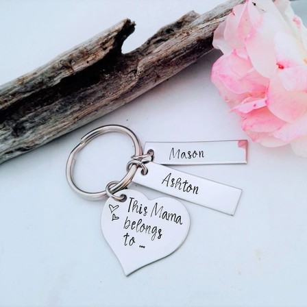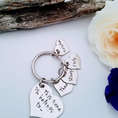 We've 'upsized' our popular Belongs To Keyring by popular request, and now you can add tags or hearts with names on them !