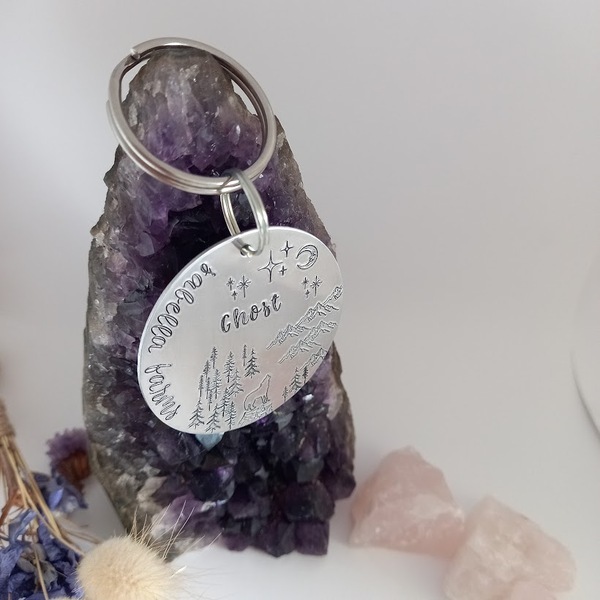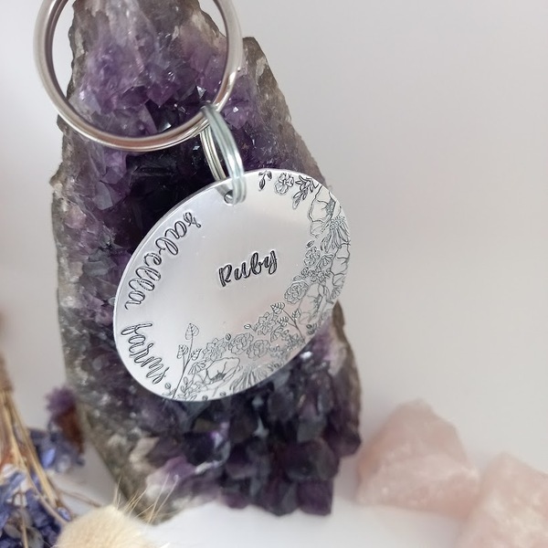 The tag is 48mm diameter, and comes on a 'chunky' to match the size keyring attachment.