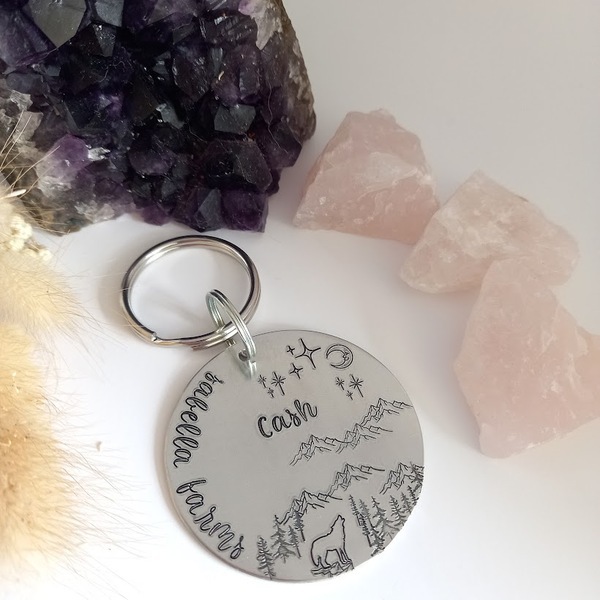 Enough space on the front for your phone number if you'd like it, your pet's name and a design as pictured.