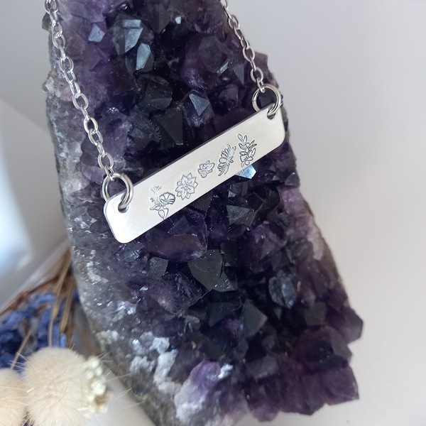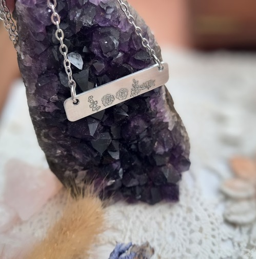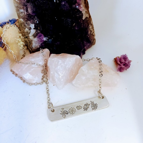 Our exquisite Birth Flower Bar Pendant, is the perfect choice for those seeking a beautiful and meaningful representation of their children or grandchildren through birth flowers. Personalised jewellery adorned with birth flowers holds a special place in our hearts, as it combines sentimentality with a delicate and captivating aesthetic.