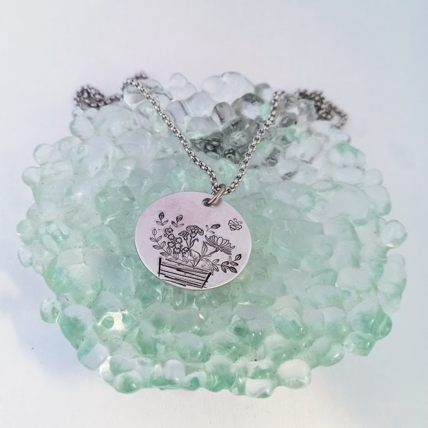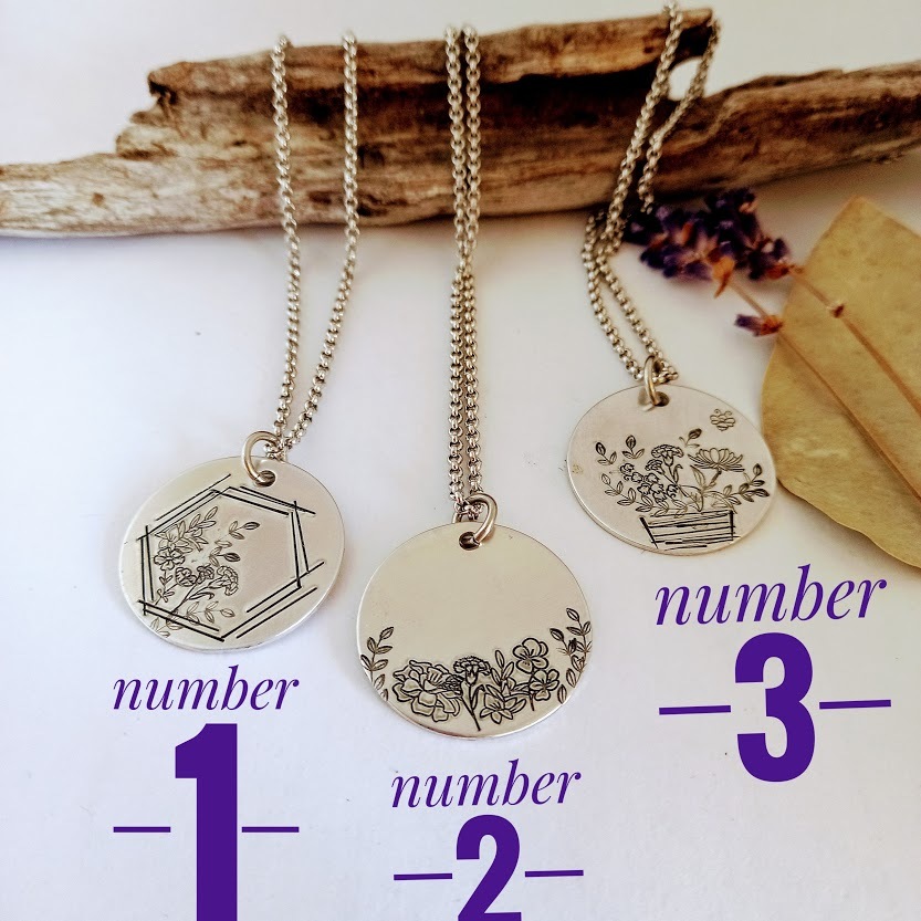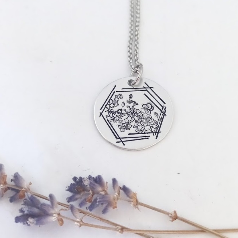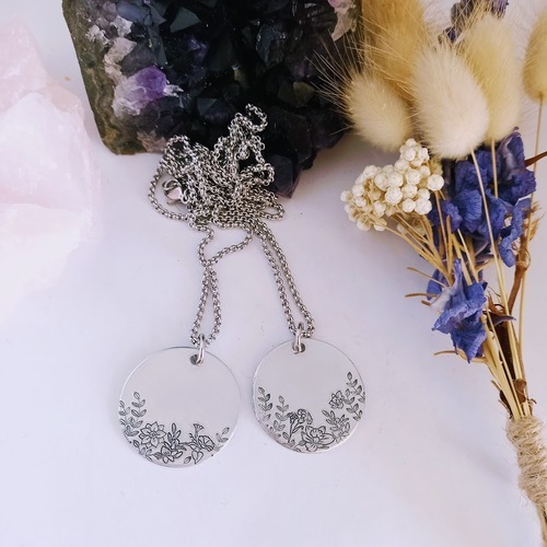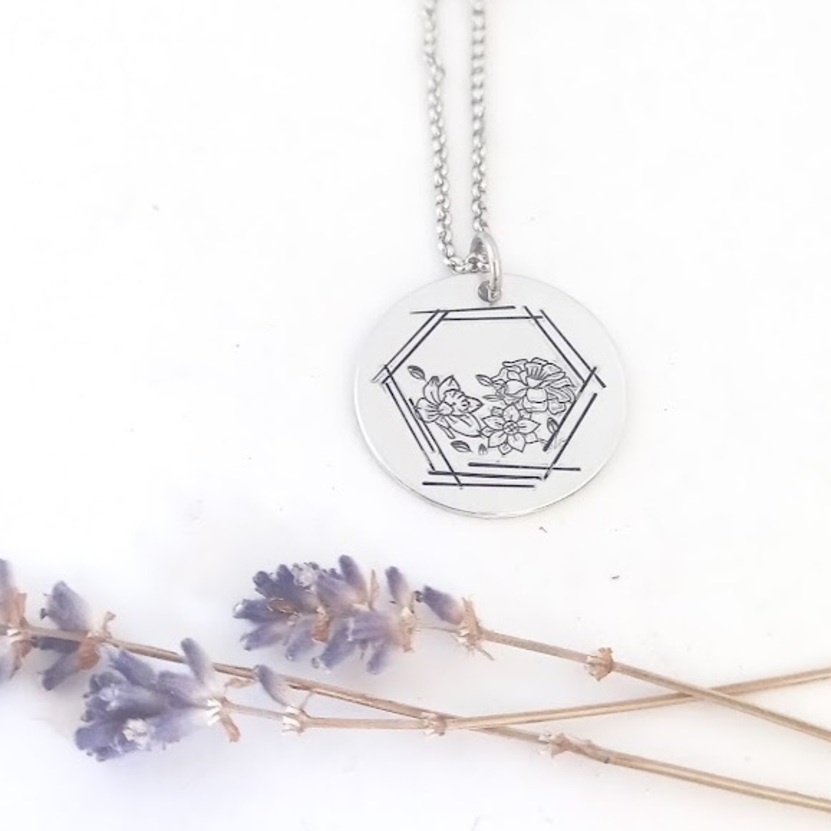Design 2: Your selected birthflowers encircling the edge of the pendant, creating a beautiful floral frame.