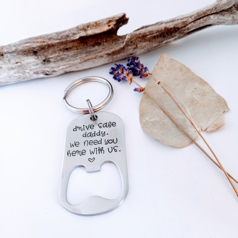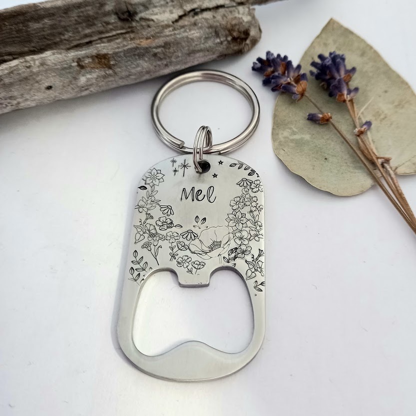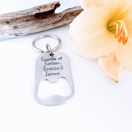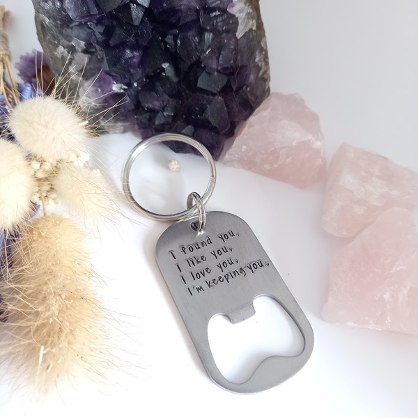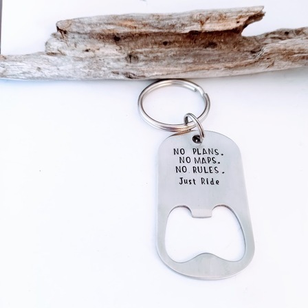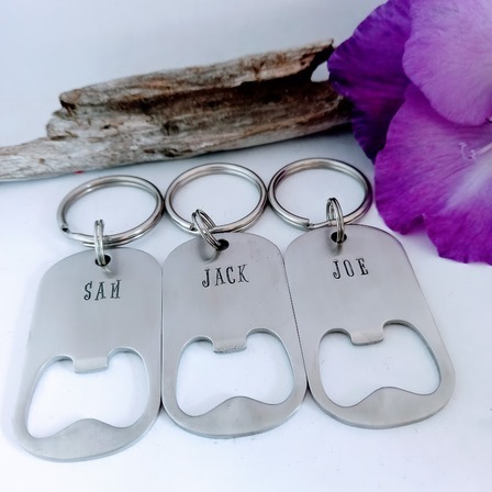 The Bottle Opener keyring, personalised for you - might be just the thing. Lots of guys seem