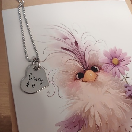 These cute necklaces are handstamped with the words "Crazy 4 u" and come with a card ready for you to write some special words! A random card (from the designs pictured) will be sent.