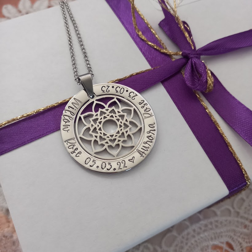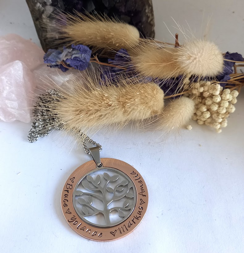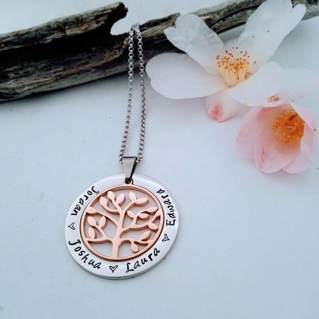 ★★★★★Beautiful pendantI bought this pendant with a silver outer, rose gold family tree, and my daughters and niece's names on it for my Mum for Christmas. Its absolutely gorgeous!! And only took a week to be created and arrive. So I've decided to order a different pendant for me for Christmas.