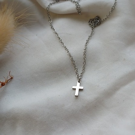 They are stainless steel and come on a fine stainless steel cable chain (45cm in length).