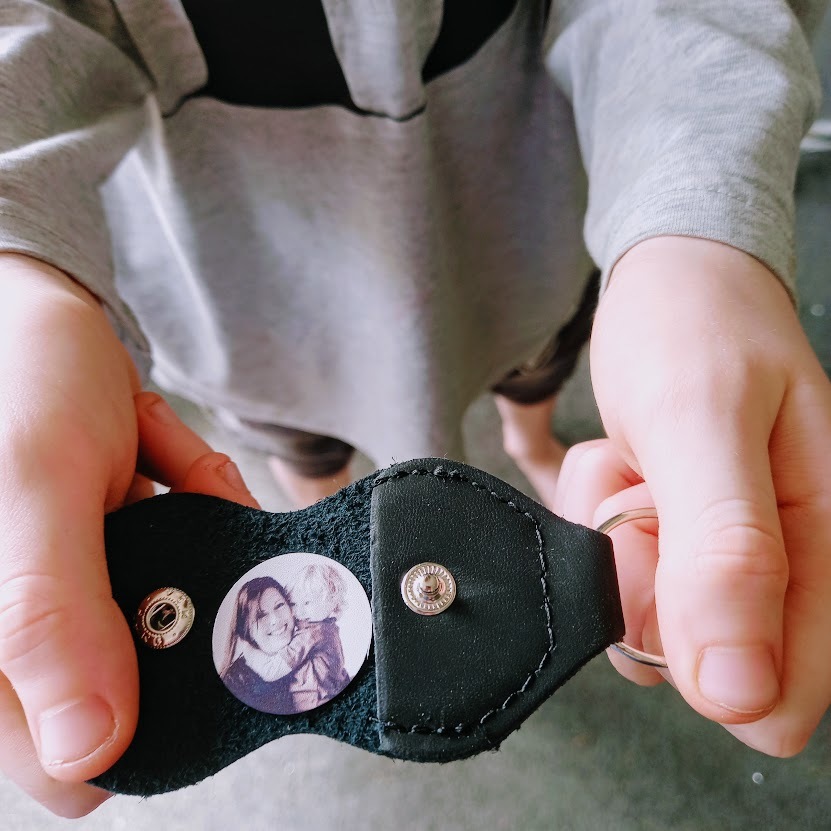 They'd be great for kids going back to school he thinks, when they miss their Mums, they can have the little photo to look at and keep close, and keep it safe in the pouch attached to their school bag.