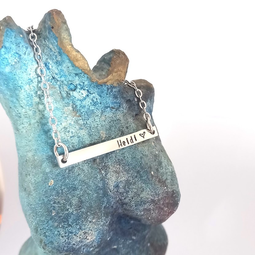 This personalised pendant's minimalist design captures the essence of simplicity and beauty. It is a perfect canvas for personalisation, allowing for a handstamped name or date, or an inspirational word that holds special meaning to you.