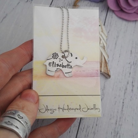 These cute little elephant pendants offer endless possibilities for personalisation. You can choose to have them stamped with charming design stamps, personalise them with a name, or even combine both options for a truly unique and special pendant.