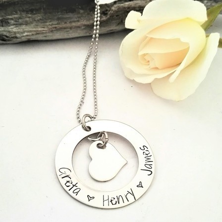 Created with stainless steel, and handstamped for you, this pendant comes on a 51cm stainless steel Rolo Chain.