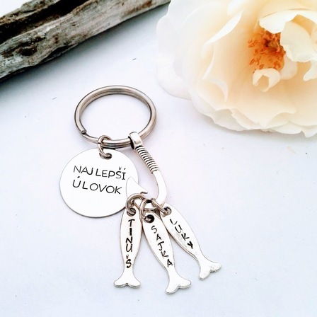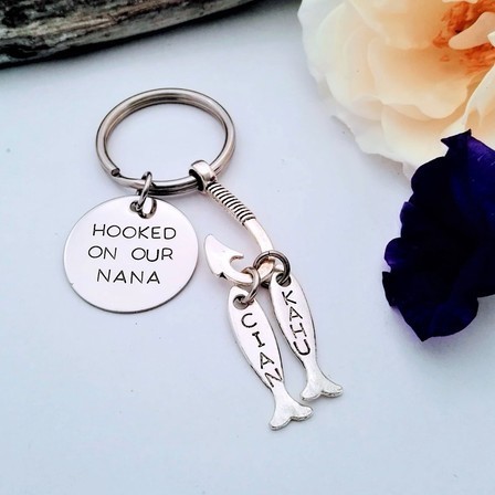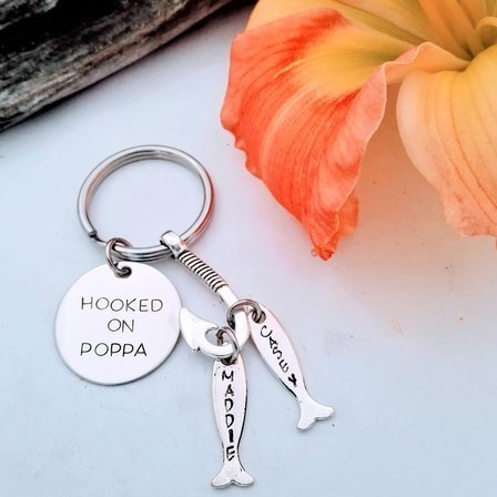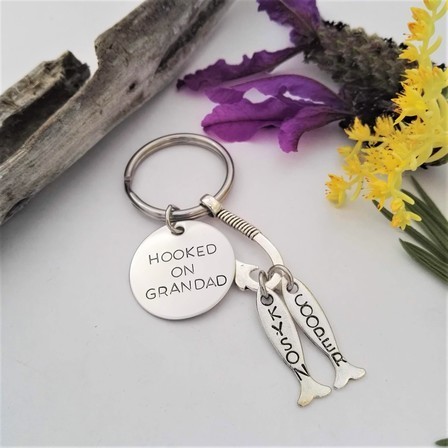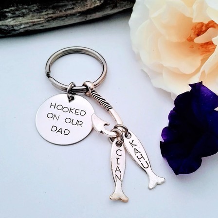 Attach as many fish as you need which can be handstamped with an initial, or a short name. Perfect for Dad and his kids, Grandad and his grandkids, or you and your partner!