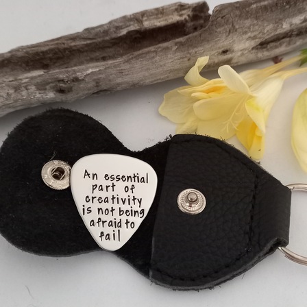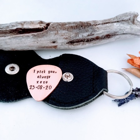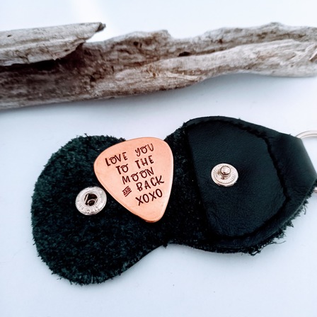 ★★★★★A unique gift that will stand the test of time.The personalised guitar pick made for a special anniversary gift for my hubby. He really loves it! It plays well and the pouch keeps it safe. Suz was happy to print my own design and it arrived really quickly. Thank you!