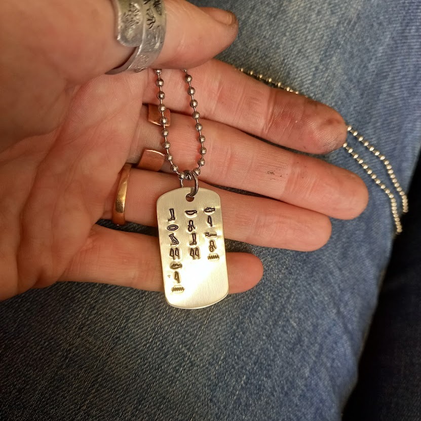 Perfect for those who have a love for all things Egyptian, this pendant allows you to personalise it with up to three names or words hand-stamped vertically. Each name or word is transformed into its corresponding Hieroglyph, adding a touch of mystery and historical significance to the pendant.