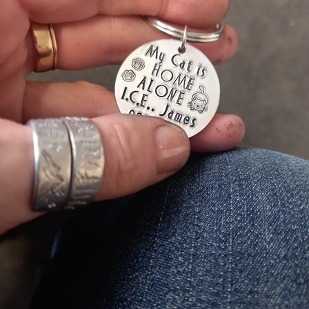 The keyring can be single or double sided, depending how much information you'd like on there, and can include cat or dog design stamps if you'd like - you can choose HERE