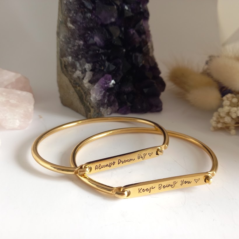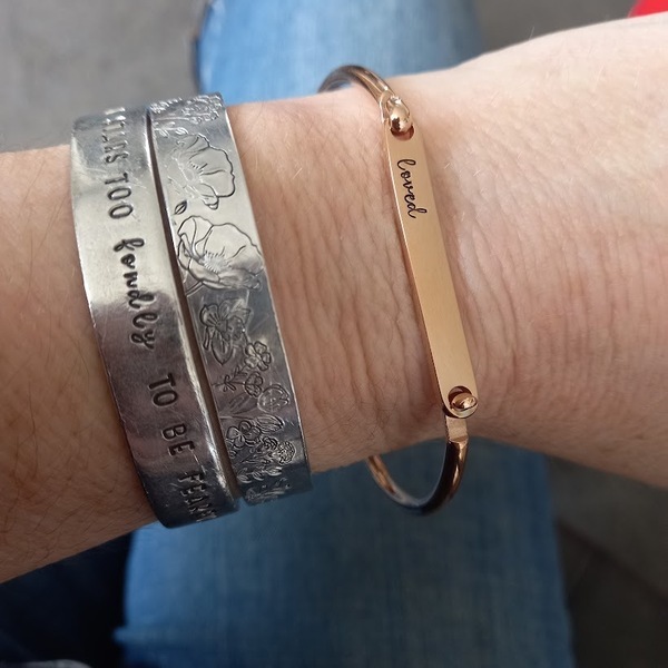 I treated myself to this beautiful bracelet and Im glad I did! Its so beautiful and Ive had so many compliments on it. Mine says 'set yourself free' as a reminder to not fret the little things! Suz has done a wonderful job, the font is perfect and the rose gold is simply stunning in real life! (Not normally a gold fan, but this is beautiful) Great quality too, thanks Suz!