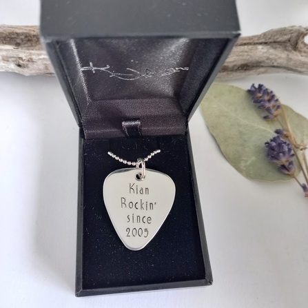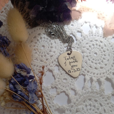 Personalisation is key when it comes to this pendant. We offer the opportunity to customise your guitar pick with any words or names that hold special meaning to you. Express your creativity and make a statement with this unique pendant.
