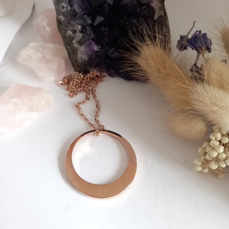 Gorgeous Rose (ION plated stainless steel) pendant, offset circle design.