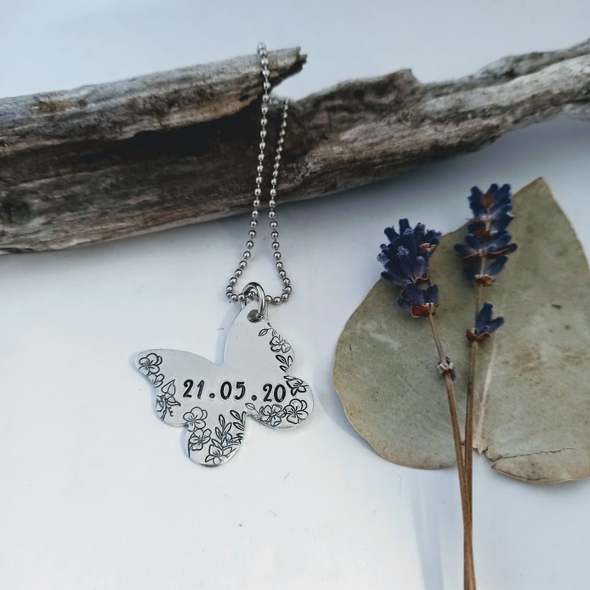 Do you know someone who loves butterflies ? This gorgeous pendant which can be handstamped with their name is just perfect, and will be treasured forever.