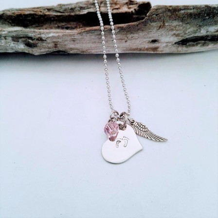 Little footprints to symbolise your baby. This is a popular design and is nice and delicate to wear.
