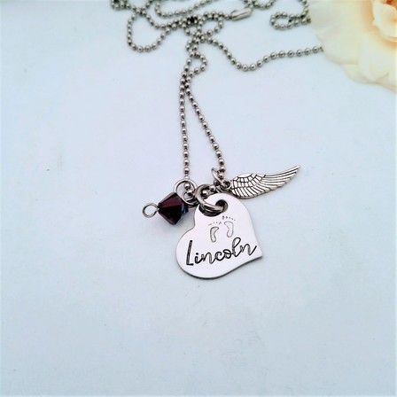 You can also add an additional disc that will sit behind the heart - more details can fit on this. Little footprints on the heart, name and date on the disc perhaps.