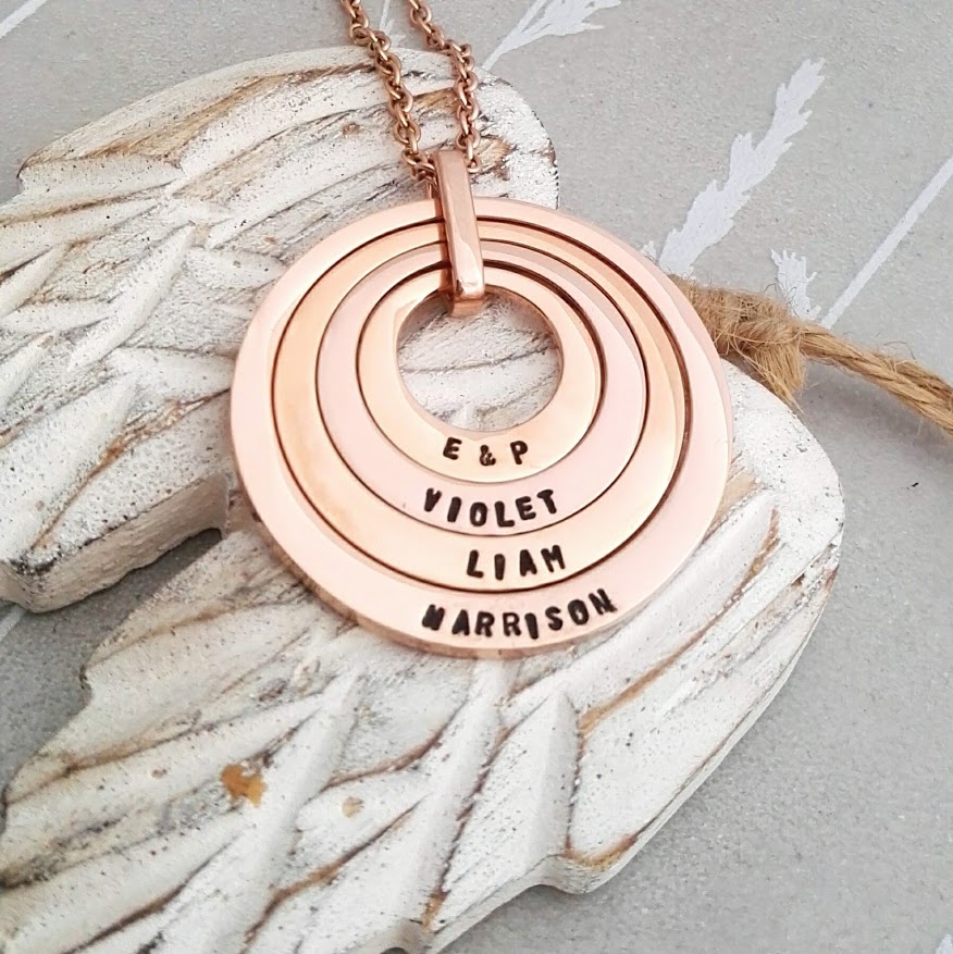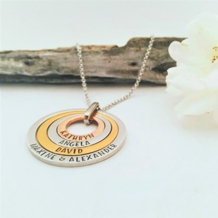 This stunning pendant features four rings, which can be personalised with the names of your loved ones, creating a beautiful and meaningful piece that represents the cherished individuals in your life.