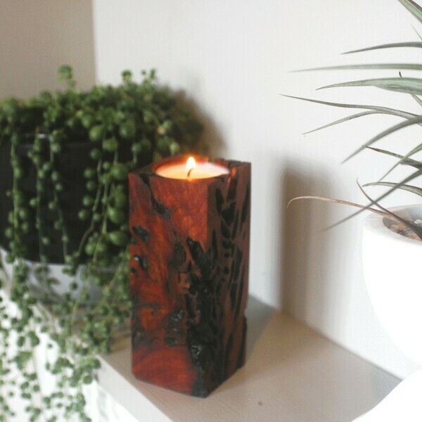 The beautiful Pillar Tealight is upcycled from rustic Matai fenceposts.