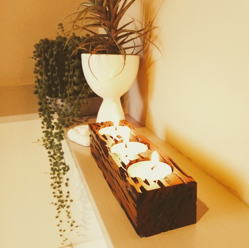 Beautiful upcycled Tealight Candle Holder, created from an unwanted fence post.