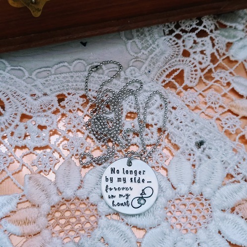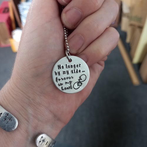 A beautiful pet memorial pendant handstamped with the words :