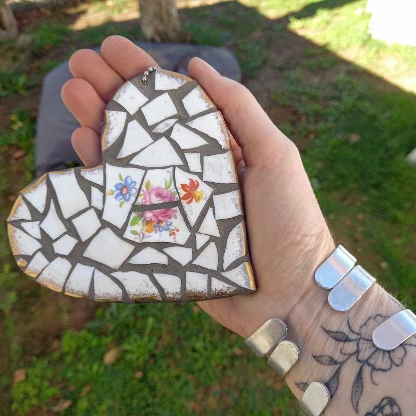 I have made several of these, so you will find the current mosaic hearts here on the website.