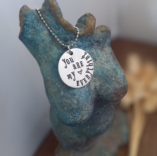 A beautiful and sentimental handstamped pendant for your 'everything'.