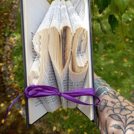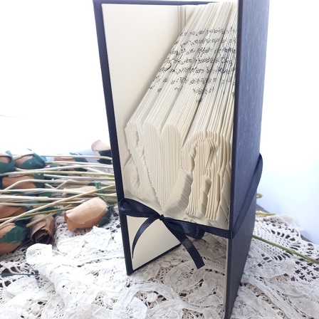 Your initials will be folded into a book (upcycled), with a heart between - the perfect keepsake to celebrate your love.
