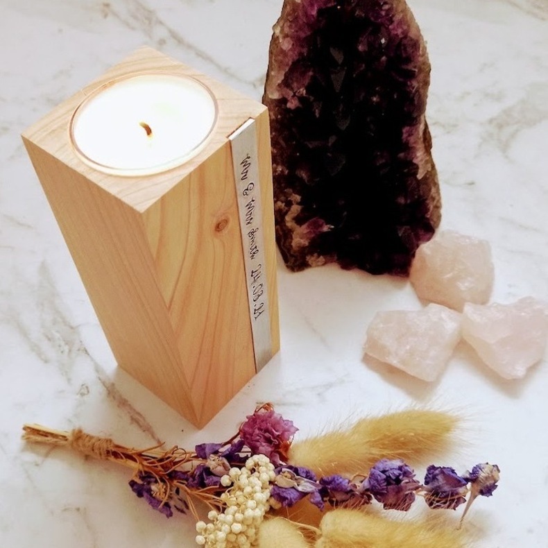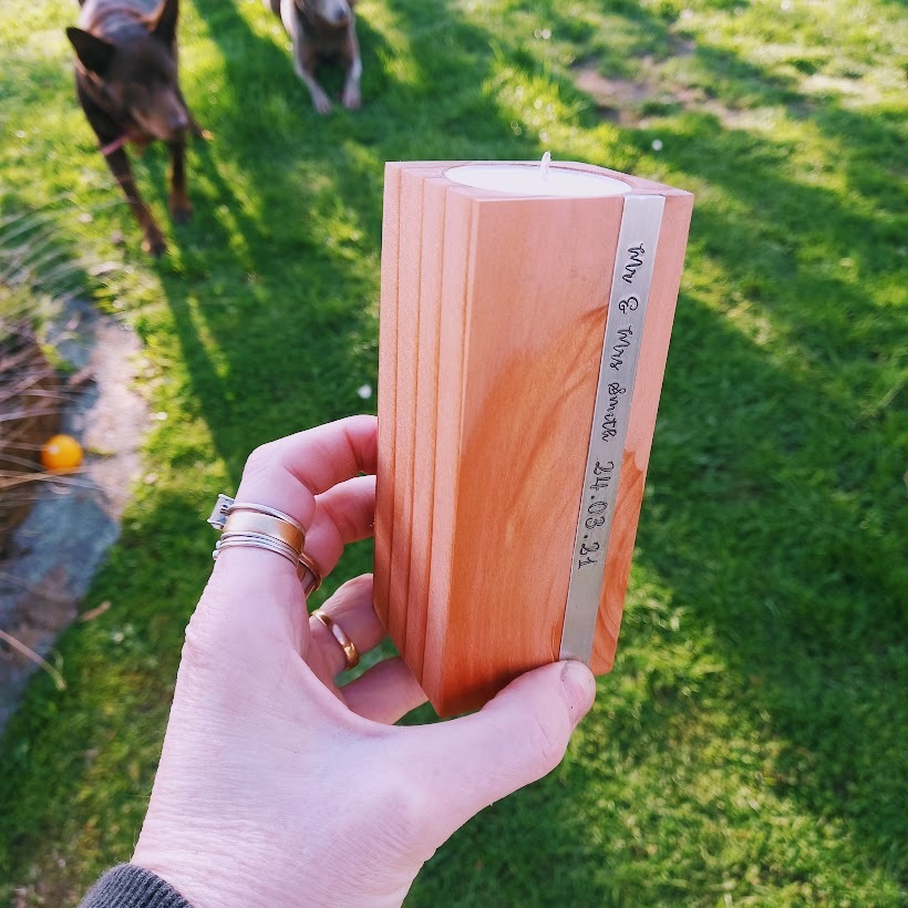 This Pillar Tealight Candle is created from Macrocarpa, finished to a high standard, and personalised for you. The words are handstamped, meaning it will be unique to you.