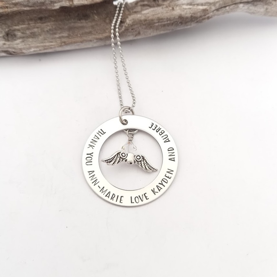 At the center of the pendant, delicate angel wings serve as a symbol of guidance and protection. To make it even more special, you can select a birthstone that holds significance, adding a beautiful and personalised touch.