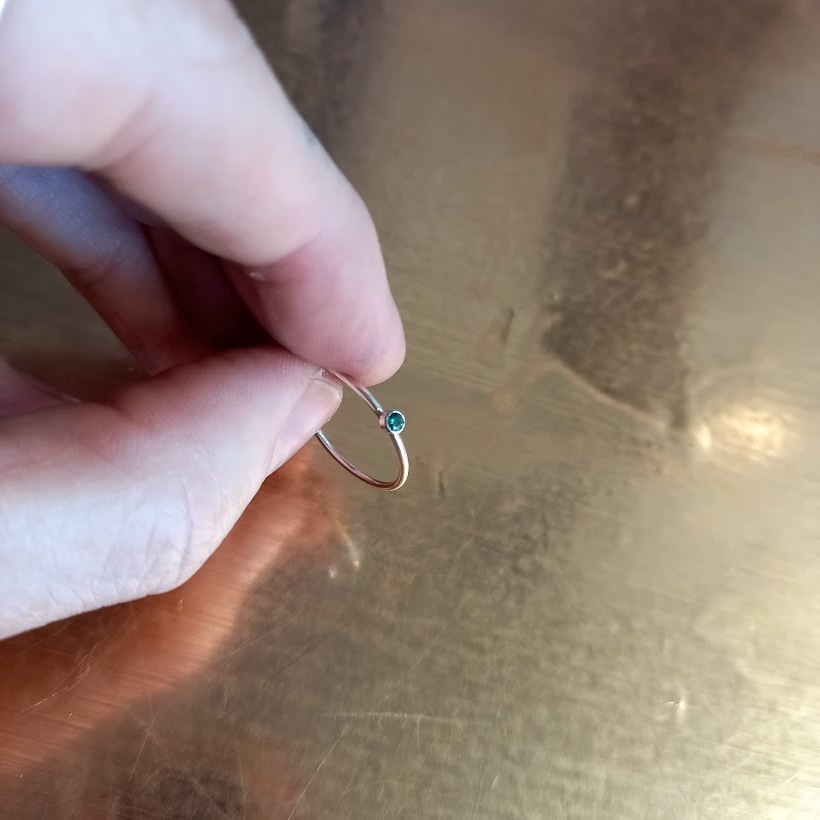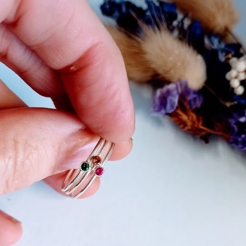 Perfect to stack, they are sterling silver, just 1mm wide and we set a 2mm birthstone crystle into the ring just for you.