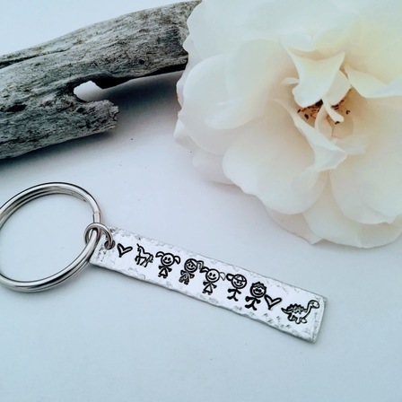 The Stick Figure Keyring is an aluminium rectangle and it can fit up to 9 stick figures.