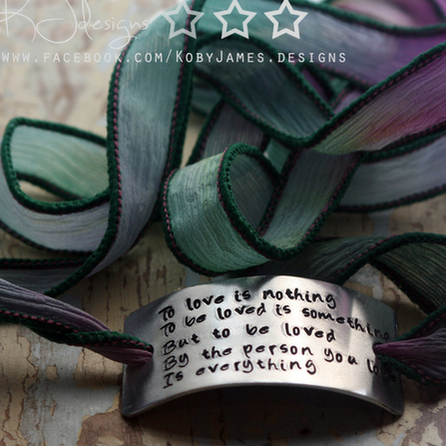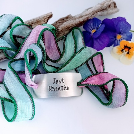 The silk ribbon is approx 1 meter long, and ties around your wrist. You can either leave a bow showing or tuck the ends in.