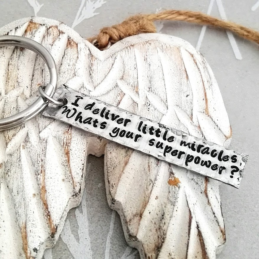 Cute Keyring, with a tag that is handstamped to say "I'm a TEACHER, what's your SUPERPOWER"