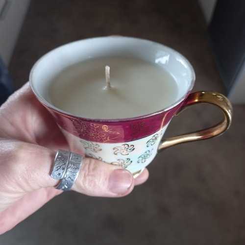 They are super cute!. I love to repurpose these floral china teacups into the cutest ever candles. Some have saucers, some are just cups, either way they add a gorgeous look to your home, and once they have finished life as a candle, you can wash and use as a cup again!