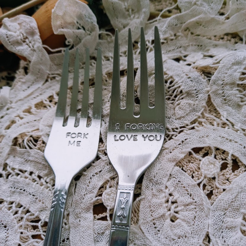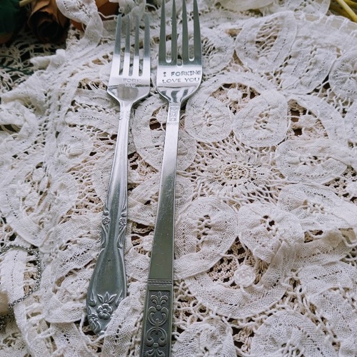 How about a cute set of Vintage Cutlery ... handstamped with words of your choice !